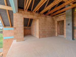 Nabízíme Vám moderní rodinný dům v městysi Liteň (okres Beroun), který je ve fázi dokončené hrubé stavby. Tento dvoupodlažní dům (přízemí + podkroví) je postaven z kvalitního zdicího systému Porotherm a má celkovou užitnou plochu 146 m. Vytápění je navrženo jako teplovodní podlahové topení s využitím tepelného čerpadla, což zaručí komfortní teplo a nízké provozní náklady. Dům je napojen na veřejný vodovod, kanalizaci i elektřinu; navíc je připraven rozvod pro využití dešťové vody například na zalévání zahrady. Budoucí majitel ocení také energetickou úspornost budovy dům spadá do energetické třídy B. Dokončení interiérů a fasád lze zajistit na klíč osvědčenou stavební firmou, takže nové bydlení si můžete dotvořit přesně podle svých představ a bez starostí, předpokládaný náklad na dokončení je 2,5 mil až 3.0 mil.