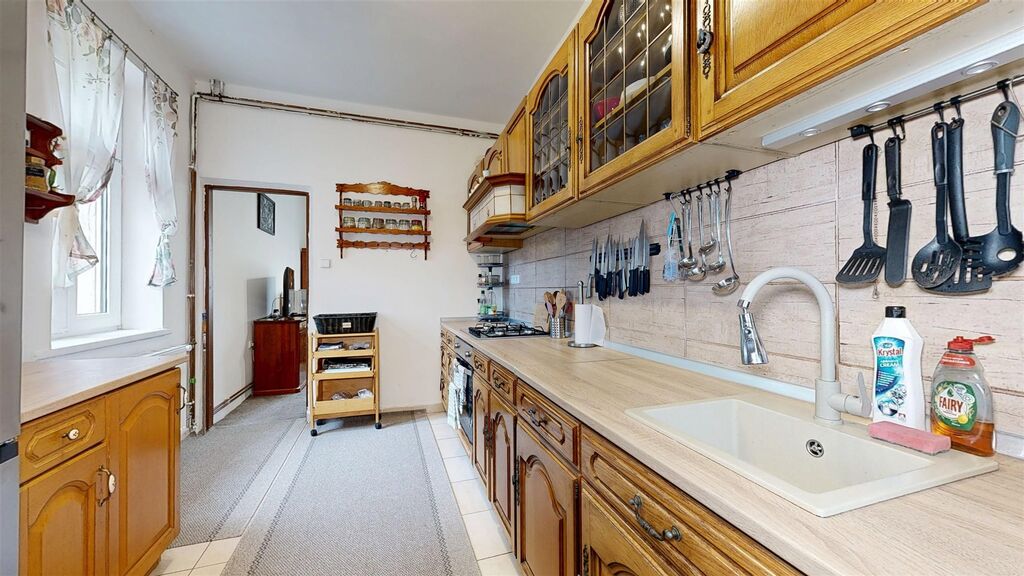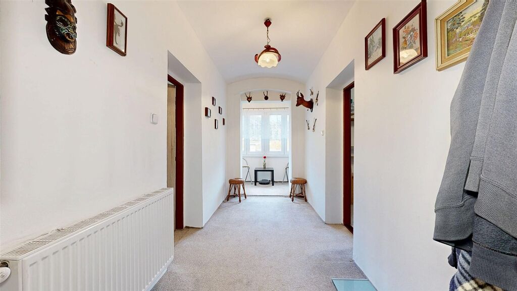 Nabízíme exkluzivně k prodeji rodinný dům se dvěma bytovými jednotkami, malou zahradou a sklepy v obci Dobkovice nedaleko Děčína. V přízemí se nachází plně rekonstruovaná bytová jednotka s dispozicí 3+1 se zimní zahradou, vytápěná elektrickým kotlem a s krbovými kamny v obývacím pokoji. V patře se nachází další bytová jednotka 3+1 s koupelnou a WC, v kuchyni je připraven přívod vody, vytápění je kamny na tuhá paliva a akumulačními kamny, jsou připraveny radiátory a je možné byt napojit na stávající elektrický kotel, případně instalovat samostatný kotel pro horní byt. Horní byt má místo zimní zahrady balkon s krásným výhledem na Labe. Konstrukce domu je smíšená, převážně cihlová, okna v celém domě jsou plastová, případně střešní dřevěná. Dům je částečně zateplený. Střešní krytina je plech. Dům je napojený na dostupné inženýrské sítě elektřinu, vodovod, odpad je sveden do jímky. K domu patří menší zahrádka s krytým posezením, garáž má bohužel nevyhovující nájezd a slouží jako dílna. Dům je podsklepený, místnosti slouží hlavně ke skladování. Obec Dobkovice disponuje základní občanskou vybaveností s výborným dojezdem do Děčína i do Ústí nad Labem. K dispozici je návrh a rozpočet rekonstrukce domu v rámci programu Oprav dům po babičce. Bližší informace rádi podáme a zajistíme prohlídku domu.