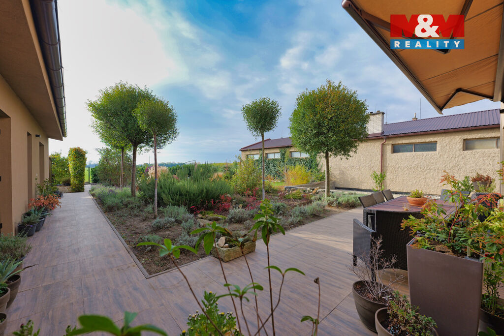 Na pozemku o rozloze 697 m² se nachází relaxační část s bazénem o velikosti 6×3 m se slanou vodou a kompletní technologií, sklad na nářadí a dva skleníky. Parkování je zajištěno pro dvě auta, s možností budoucího zastřešení a vjezd je ovládán dálkově.