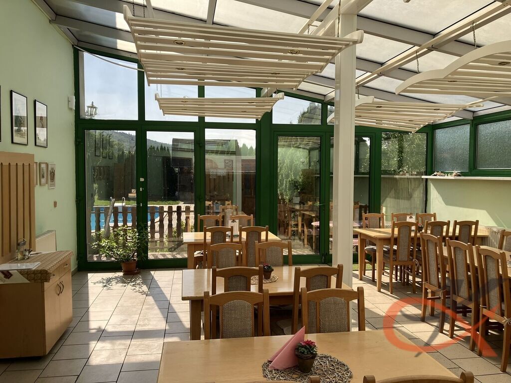 Objekt je částečně podsklepený a slouží k uložení pivních beček. Přízemí budovy je tvořeno z prostorného terasového sálu přístupného z restaurace a ze zadní strany z venkovní terasy. Dále se v přízemí nachází kuchyně, sklad potravin a sociální zařízení. Ve II.NP jsou situovány čtyři pokoje. Každý pokoj má své sociální zařízení. Dva pokoje jsou s balkónem a výhledem na venkovní terasu a nekrytý bazén. Ve III.NP jsou čtyři pokoje s jedním společným sociálním zařízením. Celková ubytovací kapacita je 41 lůžek, restaurace je pro 60 hostů a venkovní zastřešená terasa pro 20 osob.