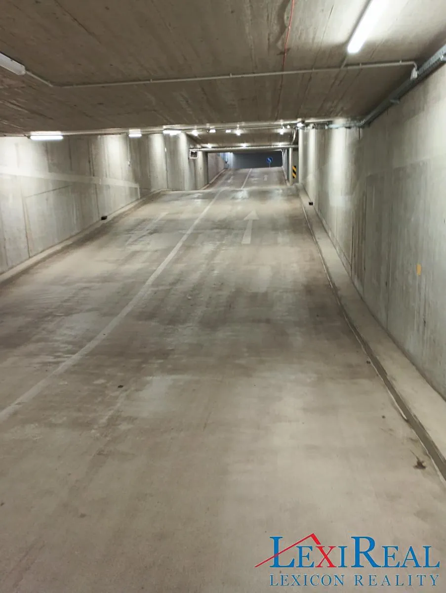 Stání se nachází v prvním podzemním podlaží. Vrata garáže jsou na dálkové ovládání a jsou vybavena monitorovacím kamerovým systémem.
