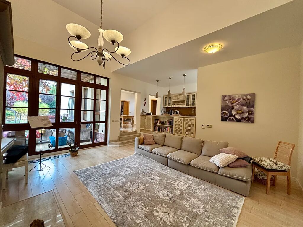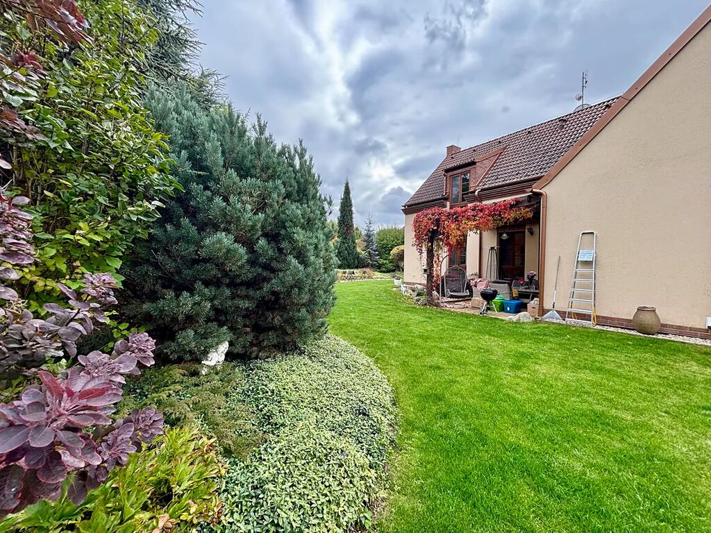 Rodinný dům disponuje v 1.NP obývacím pokojem s krbem, s plně vybavenou kuchyní, ložnicí, pracovnou, koupelnou se sprchovým koutem a WC, dalším samostatným WC. V garáži je umístěn plynový kotel zn. Junkers a bojler na vodu pro vytápění a ohřev vody. Ve 2.NP jsou 3 pokoje, koupelna s vanou a WC, další koupelna se sprchovým koutem a WC, šatnou, chodbou, výlezové okénko pro vstup na půdu. V obýv. pokoji, kuchyni, jídelně a koupelnách je možno si zapnout el.podlahové vytápění, jinak jsou po celém domě topná tělesa. Dům je napojen na veškeré inženýrské sítě – vodovod, elektřina, plynovod, kanalizace. Okna jsou dřevěná s izolačním dvojsklem, podlahové krytiny – laminátová plovoucí podlaha, dlažba. V domě je nainstalován zabezpečovací systém Paradox. Zahrada je velmi opečovávaná okrasné keře, jabloně, třešeň, v záhonech zavlažovací systém.
