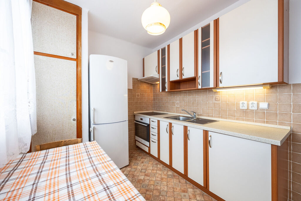 Byt má vybavenou kuchyň, která nabízí dostatek prostoru pro pohodlné vaření. Samostatná toaleta, koupelna s vanou a prostorem na pračku zajišťují maximální komfort a praktičnost. Dětský pokoj, ložnice a prostorný obývací pokoj poskytují dostatek místa pro celou rodinu a umožňují vám vytvořit si domov podle svých představ.