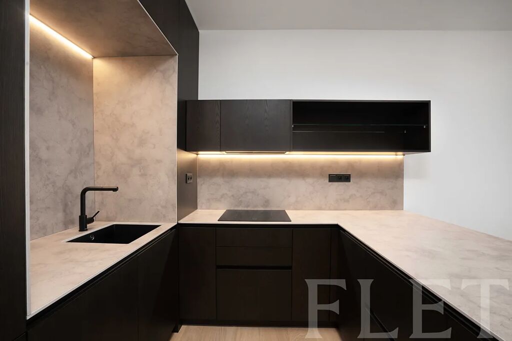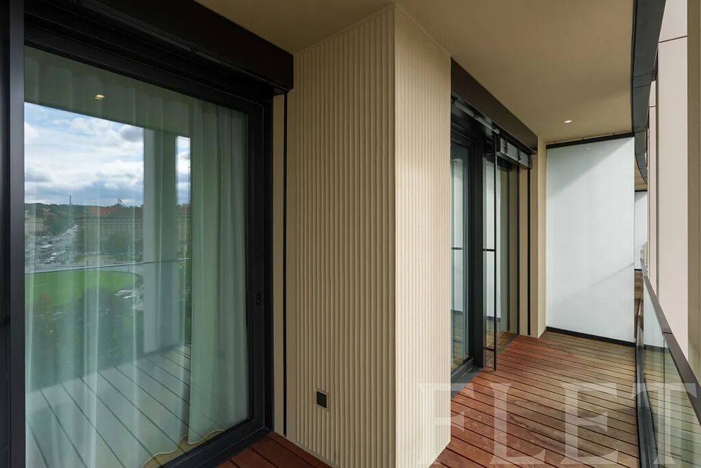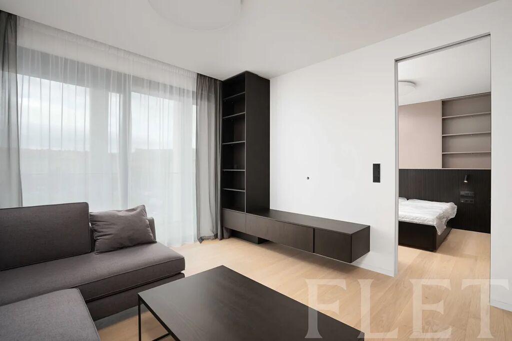 Interiér bytu byl navržen s pečlivostí a smyslem pro detail. Vysoký standard provedení podtrhují dřevěné podlahy, francouzská okna s trojskly, klimatizace, systém rekuperace vzduchu i vestavěný nábytek na míru. Prostorný obývací pokoj s moderní kuchyňskou linkou tvoří přirozené centrum bytu, ideální pro odpočinek i společné chvíle. Ložnice nabízí klidnou zónu pro relaxaci, praktická komora s kombinovanou pračkou se sušičkou zase usnadní každodenní provoz. Elegantní koupelna se sprchovým koutem a toaletou doplňuje dojem promyšleného a komfortního domova.
