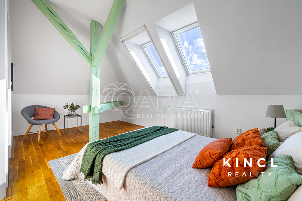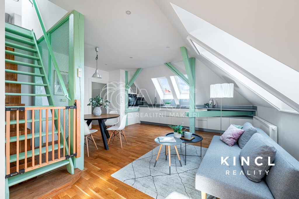 Tento prosluněný podkrovní mezonet o ploše 93 m² je přesně tím místem, kde se budete těšit na každý návrat domů.