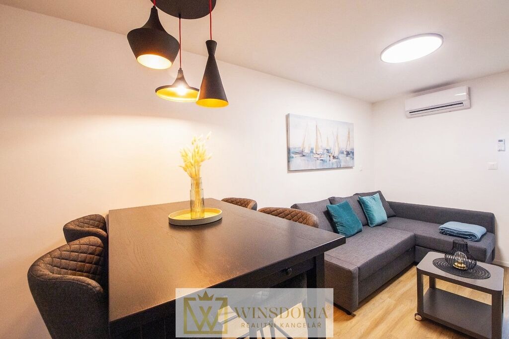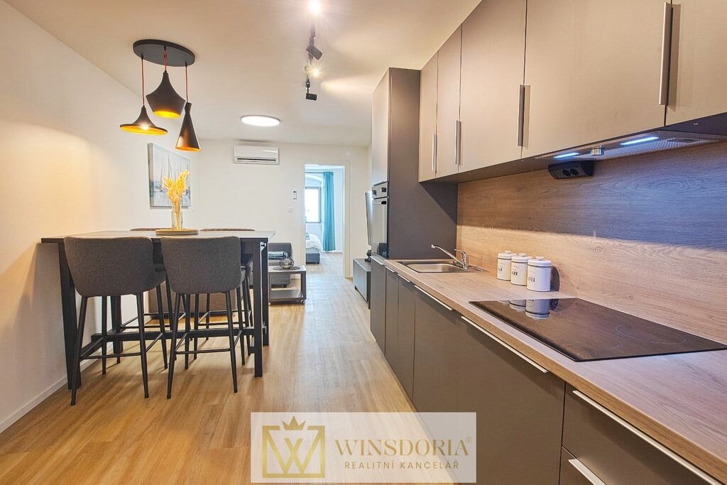 Byt prošel kompletní rekonstrukcí – nové rozvody vody a elektřiny, nové podlahy, stěny s knaufem, kvalitní truhlářské práce a moderní klimatizace pro vytápění i chlazení.