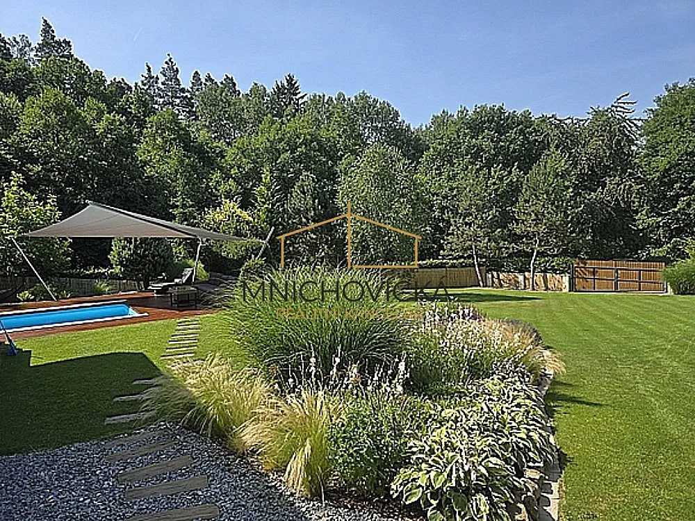 Dům stojí v krásné a udržované zahradě o výměře cca 1450 m2, se vzrostlým porostem okolo oplocení, chránícím soukromí majitelů od sousedních pozemků.