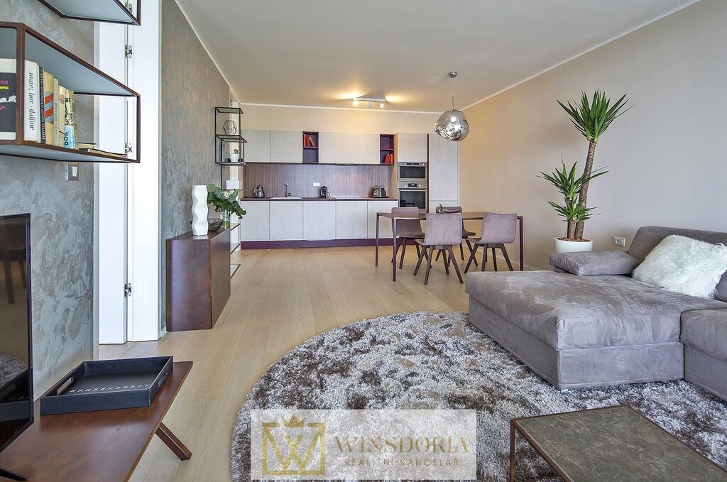 Apartmán o rozloze 76 m² se nachází v prvním patře moderního rezidenčního domu s výtahom, společným bazénem a vířivkou, které jsou k dispozici všem rezidentům.