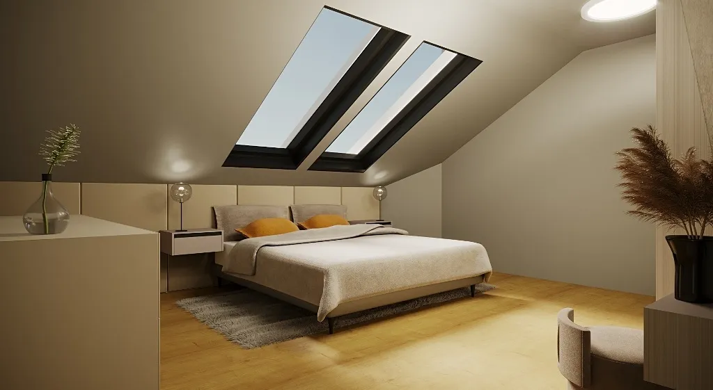 Okna se sedmikomorový profil s termoizolačním trojsklem, střešní okna VELUX s termoizolačním trojsklem. Předokenní žaluzie s elektrickým ovládáním