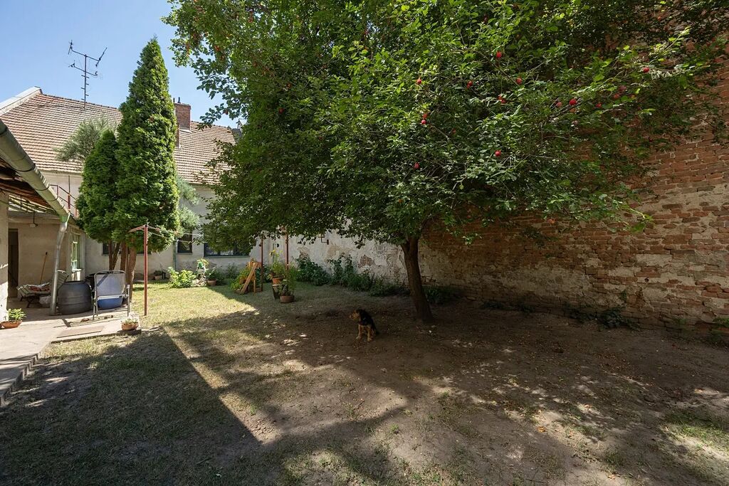 K domu patří zahrada, jejíž součástí je hospodářské stavení (skladové prostory) s přístřeškem.