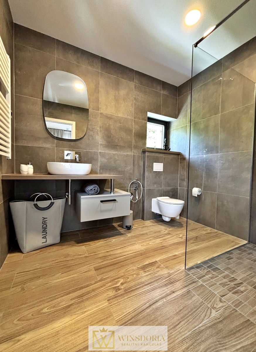 Všechny pokoje jsou klimatizované, v koupelnách je podlahové vytápění, a interiér je navržen tak, aby poskytoval maximální pohodlí a funkčnost – ideální jak pro trvalé bydlení, tak pro luxusní rekreační dům nebo turistický pronájem.