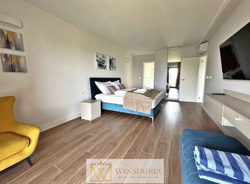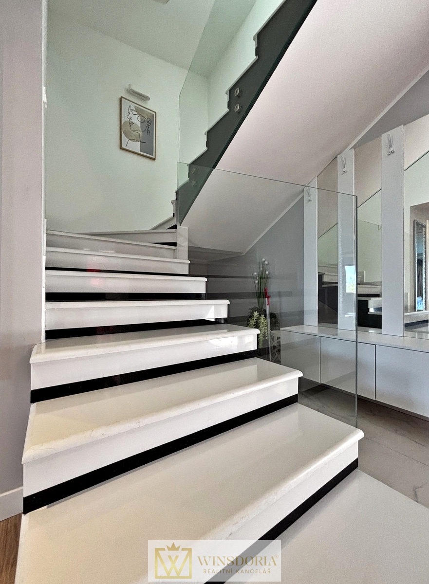 Do prvního patra vede vnitřní schodiště. Zde je umístěno pět ložnic, každá s vlastní koupelnou a přístupem na terasu, dále technická místnost. Zvláštností domu je prostorná střešní terasa s nádherným otevřeným výhledem na celý Kvarnerský záliv.
