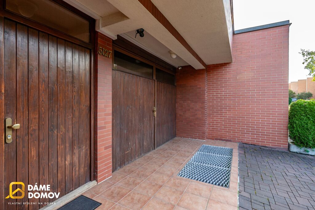 Možnost pohodlného parkování před garáží nebo přímo v ní. V patře se nachází pokoj, koupelna, WC a prostorný obývací pokoj propojený s kuchyní a jídelnou. Dva výstupy vedou na velkou terasu s krásným výhledem na město.