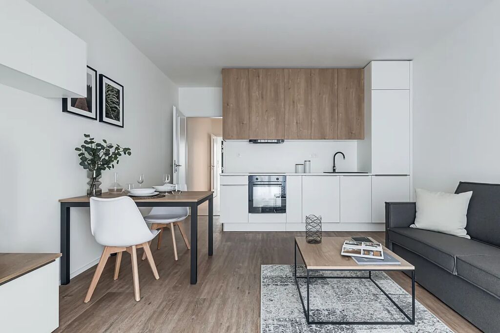 Nabízíme Vám byt 2+kk k pronájmu v projektu AFI Home Karlín. Kompletně zařízený a stylový byt se nachází ve 2. nadzemním podlaží v novostavbě. Byt je kompletně zařízený včetně kuchyňského koutu a spotřebičů. Nábytek byl vyroben na míru s ohledem na dostatek úložného prostoru. Smart TV a rychlé připojeni k internetu. V okolí je kompletní občanská vybavenost: pizzerie, školka, kavárna, Beauty Salon, supermarket.