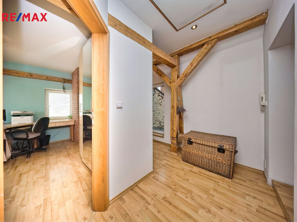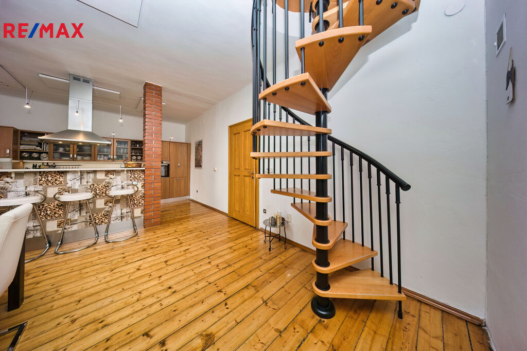 Nabízíme k prodeji mezonetový byt 5+1 s krytým parkovacím stáním, zahradou ve společném užívání (s vyhrazeným soukromým prostorem), terasou a sklepem v osobním vlastnictví o celkové evidované podlahové ploše 189 m². Byt se nachází ve 2. a 3. nadzemním podlaží (z celkem 3 NP) cihlového domu z roku 1919 bez výtahu.