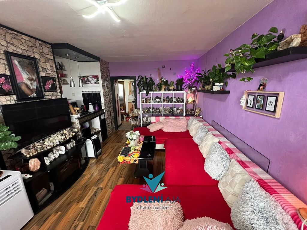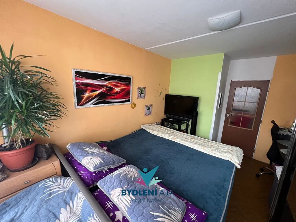 Dispozice bytu nabízí obývací pokoj s kuchyňským koutem, dvě neprůchozí ložnice, koupelnu s vanou a WC v jedné místnosti a prostornou lodžii s výhledem do okolí. Byt je vhodný jak k okamžitému nastěhování, tak i k úpravám dle vlastního vkusu.
