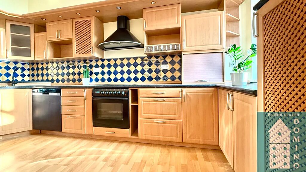 - kuchyně – zde se nachází velká kuchyňská linka s vestavěnými spotřebiči a myčkou, kde se vám bude příjemně vařit