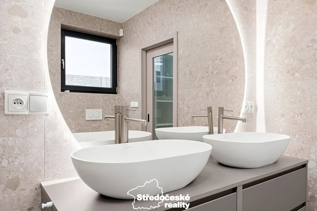 V interiéru jsou použity kvalitní materiály – italská keramika, prémiová sanita a moderní detaily.