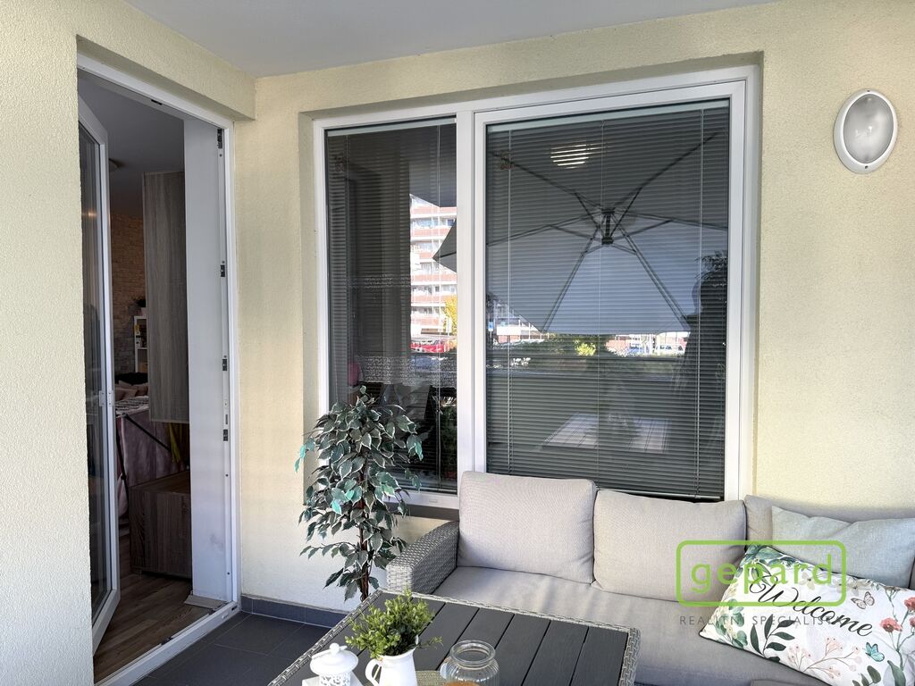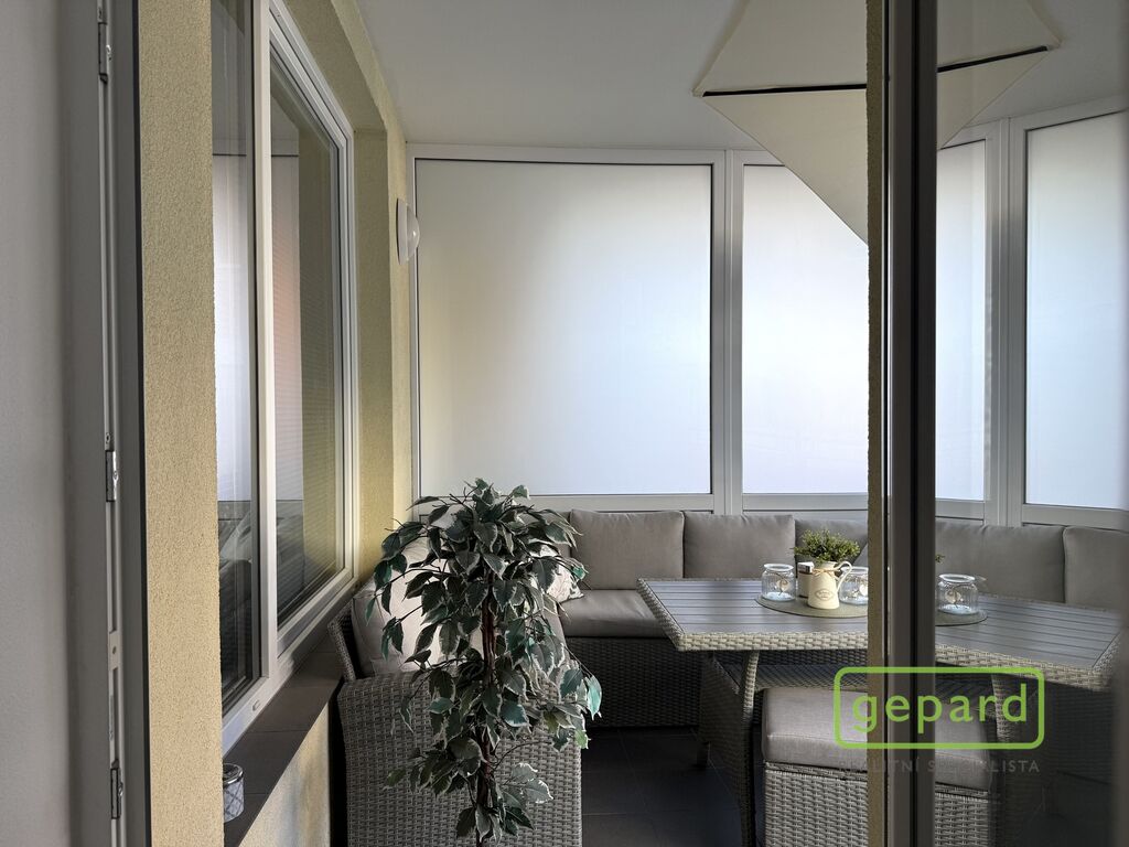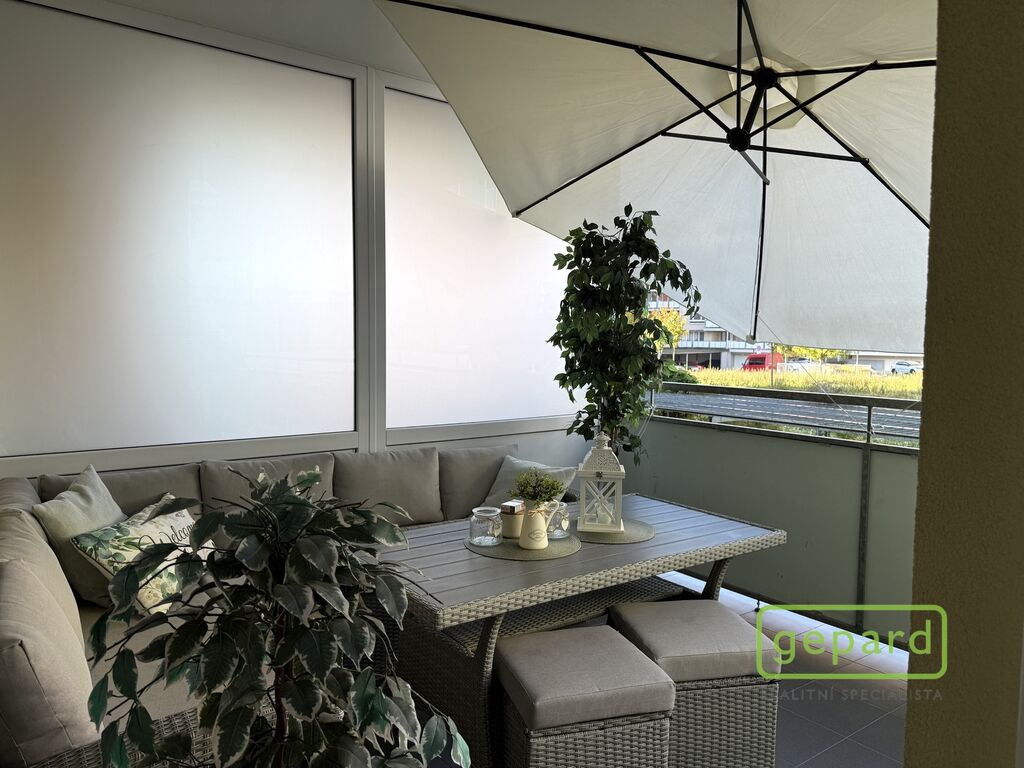 Dominantou bytu je prostorná terasa orientovaná na východ, přístupná přímo z obývací části – ideální místo pro ranní kávu nebo odpočinek.