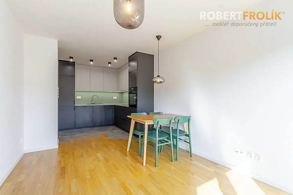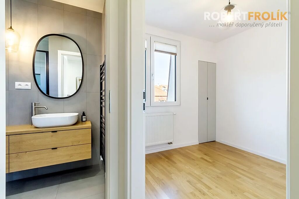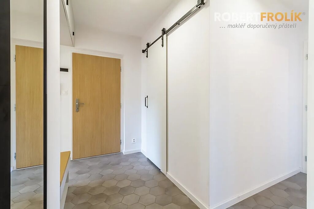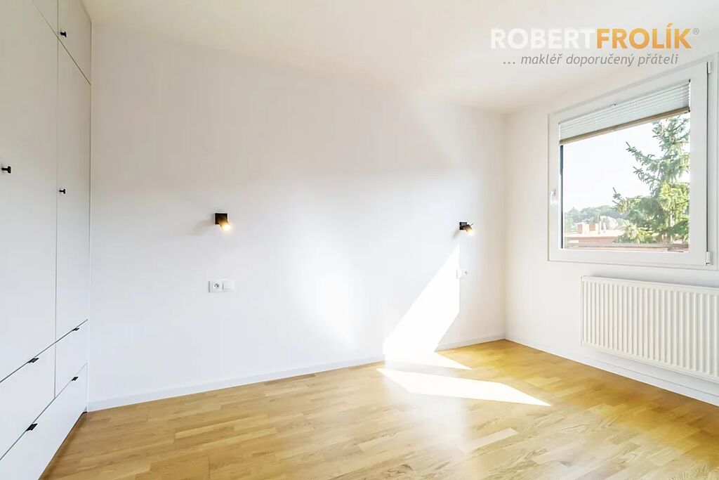 Byt se pronajímá nezařízený, zůstane jen kompletní kuchyně s vestavnými spotřebiči (el. trouba s pyrolýzou, indukční varná deska, digestoř, myčka, lednice AEG), vestavěné skříně v ložnici, chodbě a pracovně, nábytek v koupelně a designové osvětlení. Může zůstat i jídelní stůl a židle. Vše ostatní (včetně pračky a sušičky) si musíte dovézt vlastní.