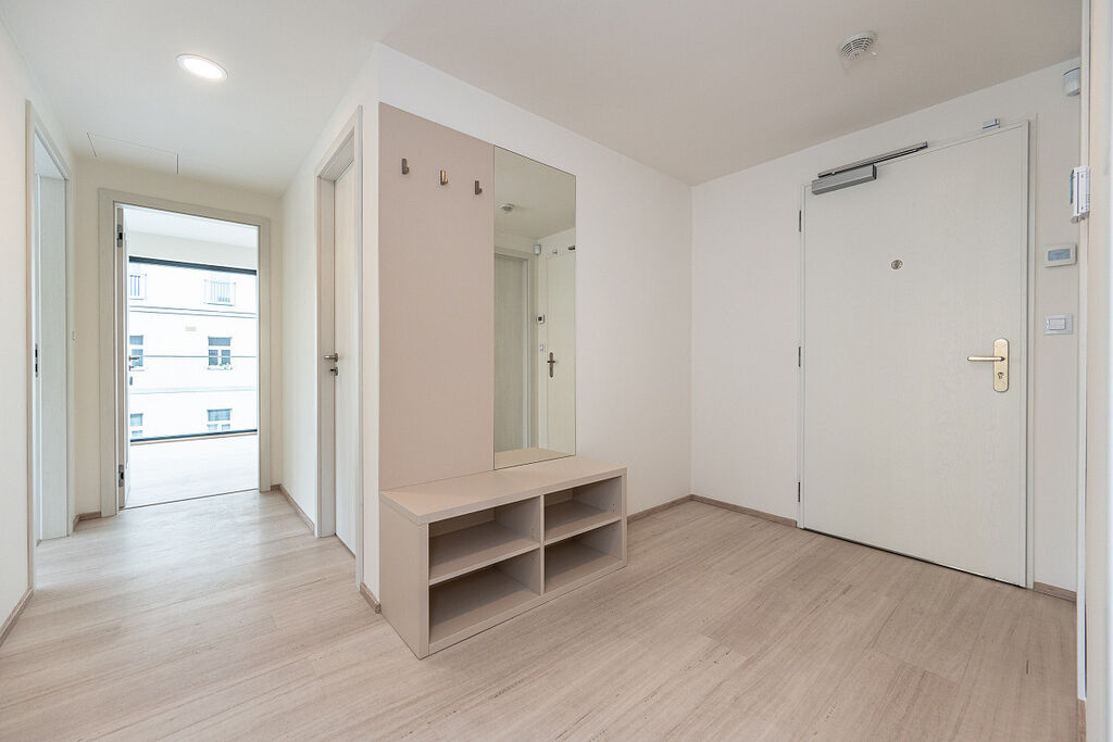 Vybavení bytu zahrnuje kuchyňskou linku s vestavěnými spotřebiči: lednice s mrazákem, myčka, indukční varná deska, digestoř, stropní svítidla, klimatizací, rekuperací pro komfortní a zdravé bydlení, předokenní žaluzii.