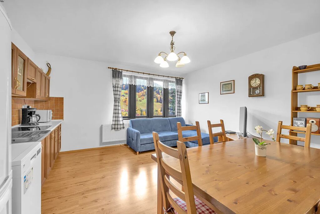 Nemovitost má dispozici 8+2, rozložena do dvou obytných pater. Přízemí slouží jako technické zázemí včetně garáže. Interiér nabízí útulné pokoje, společenské prostory, kuchyňské zázemí a koupelny, vše ve stylu horského penzionu. Vytápění je řešeno kombinací elektrických přímotopů a ekologického kotle na paletky. Před dvěma lety byla provedena kompletní rekonstrukce střechy.