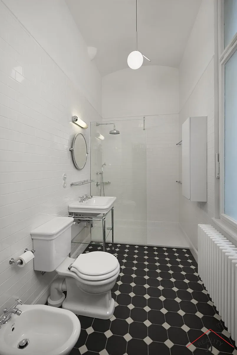 - hlavní ložnice (24,5 m2) s koupelnou se sprchovým koutem a WC