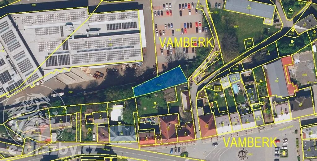 Nabízíme k prodeji formou elektronické licitace pozemek o výměře 516 m2. Pozemek se nachází v obci Vamberk. V blízkosti centru města, cca 100 m od náměstí. Pozemek sousedí s velkým průmyslovým areálem PEWAG.