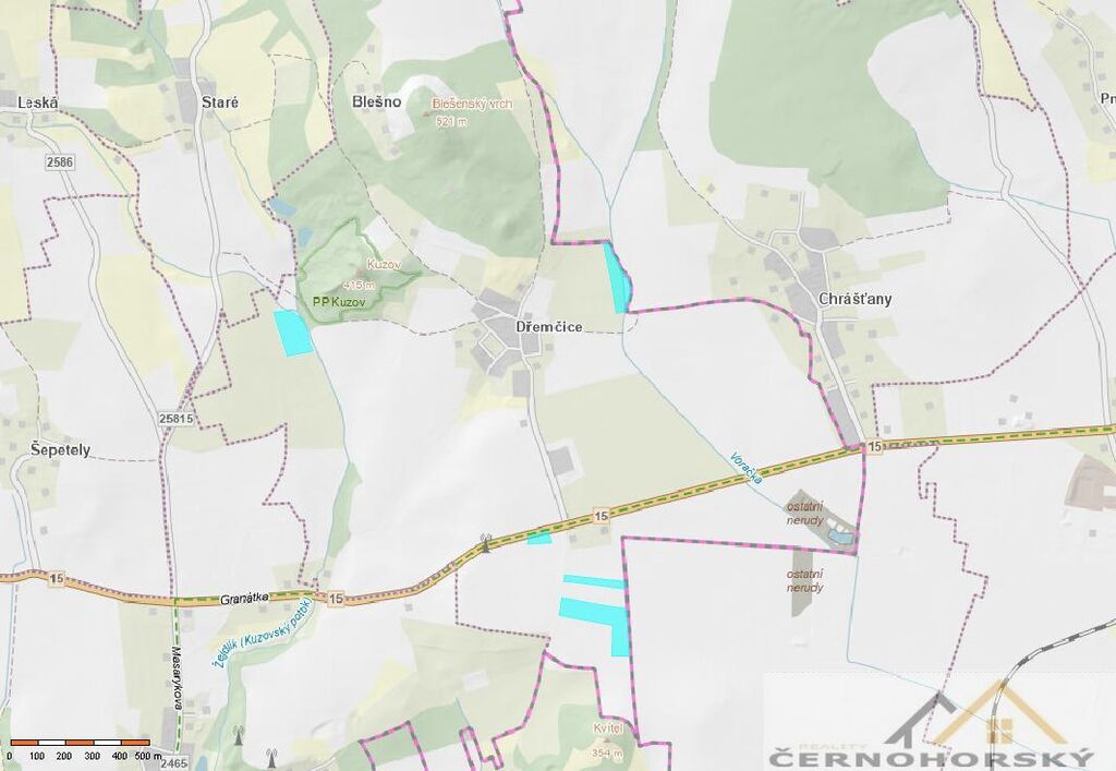 Nabízíme exkluzivně ke koupi pozemky o celkové výměře 45497 m2 v k.ú. obce Dřemčice na okrese Litoměřice. Předmětem prodeje jsou pozemky parcelních čísel: 115/3 (5576 m2 - Orná půda), 116 (22140 m2 - Orná půda), 133/1 (2909 m2 - Orná půda), 245/2 (14803 m2 - Trvalý travní porost), 528 (69 m2 - Ovocný sad). Požadovaná cena 42,-Kč/m2. Bližší informace v RK.