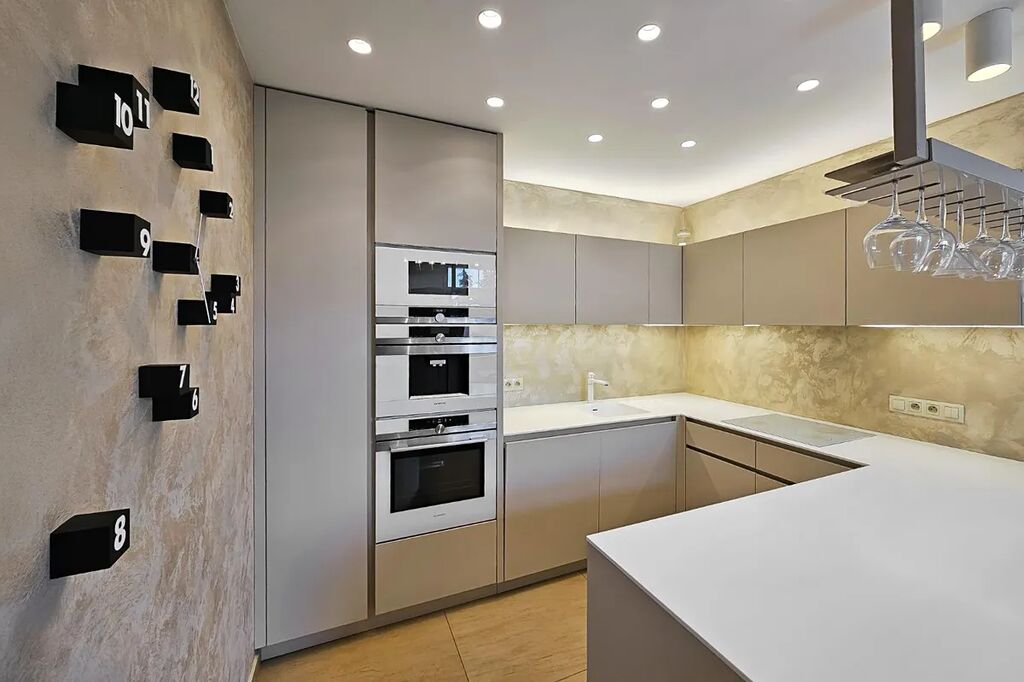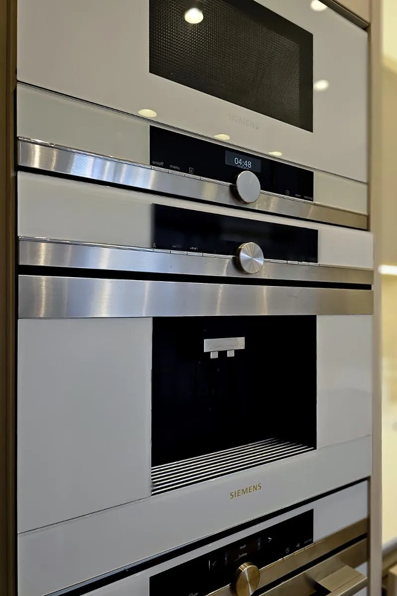 Dominantou bytu je velkorysý obývací prostor s designovou kuchyní, plně vybavenou vestavnými spotřebiči (trouba, mikrovlnná trouba, kávovar, varná deska, plně integrovaná myčka). Na kuchyň plynule navazuje jídelní část a obývací zóna s výhledem do zeleně.