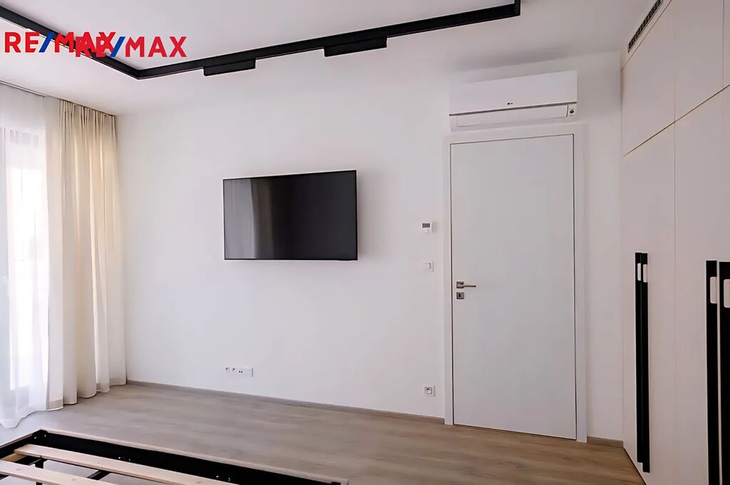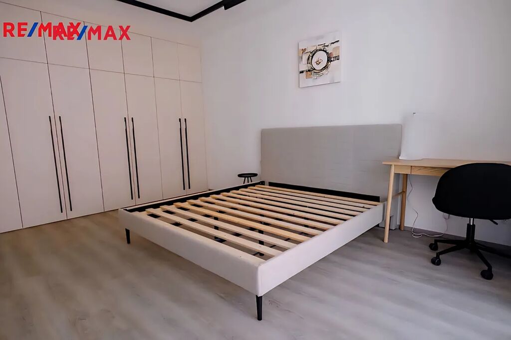 Byt je plně zařízen nábytkem a moderními spotřebiči, včetně kuchyňské linky s vestavnými spotřebiči (elektrická trouba, indukční varná deska, mikrovlnná trouba, myčka, digestoř a kombinovaná lednice), pračky a dvou Smart TV. Dále je k dispozici pohovka, skříňka, stůl se čtyřmi židlemi, vestavěné skříně, postel, psací stůl a židle.