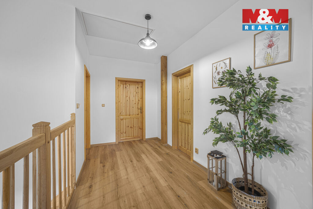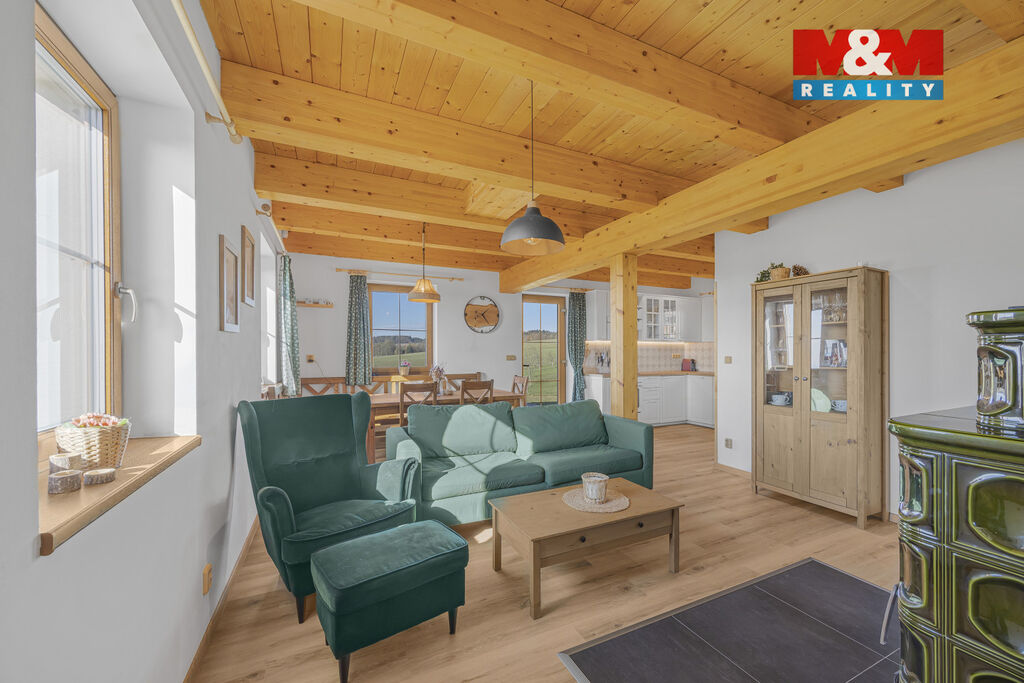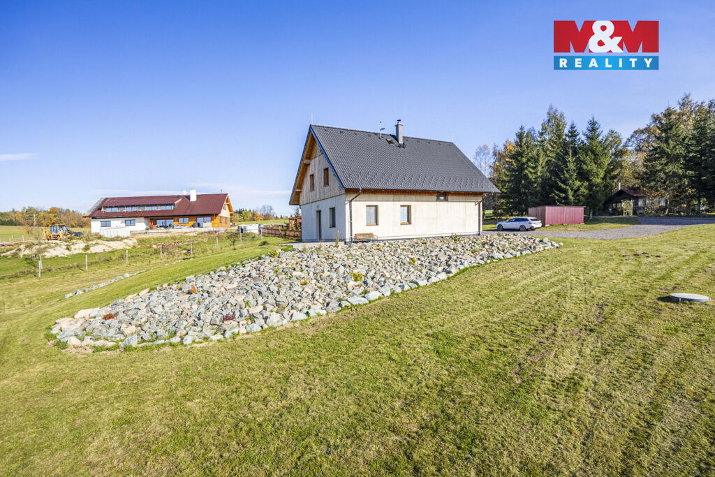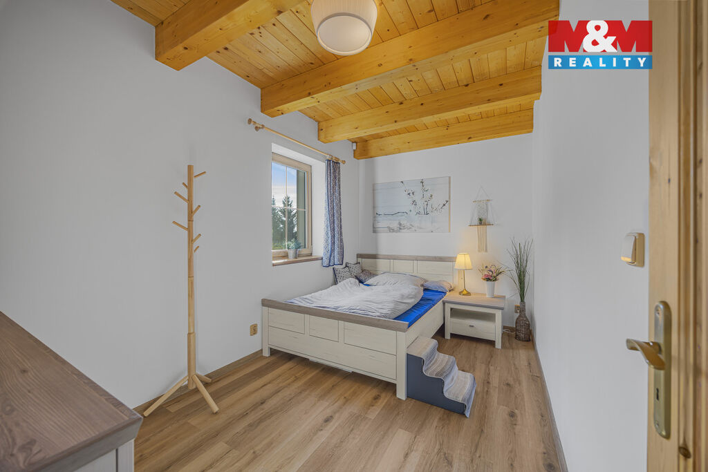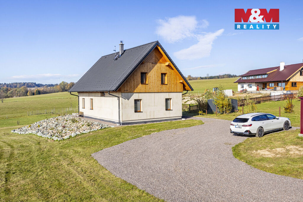 Nabízíme k prodeji stylovou horskou chalupu kolaudovanou jako rodinný dům o dispozici 5+kk, situovanou v klidné části obce Bělá u Liberka. Dům o užitné ploše 142 m² je novostavbou se dvěma nadzemními podlažími. Na pozemku o rozloze 3835 m² naleznete zpevněné parkování a dostatek prostoru pro odpočinek. V domě jsou dvě koupelny, jedna s vanou a druhá se sprchovým koutem. Podlahy jsou vinylové s podlahovým vytápěním, které je zajištěno tepelným čerpadlem a kachlovými kamny s výměníkem. Nemovitost je vybavena moderní kuchyňskou linkou se všemi spotřebiči. Technická místnost je vybavena akumulační nádrží, elektrický bojlerem a úpravnu pitné vody. Voda je zajištěna z vrtné studny, odpadní vody jsou řešeny biologickou čistírnou. Okna plastová s trojskly a sítěmi proti hmyzu. Dům je kompletně zateplený a čeká na finální nátěr fasády podle vkusu nového majitele. Ski areály Říčky a Zdobnice vzdálené 16 minut autem. Více informací u makléře.