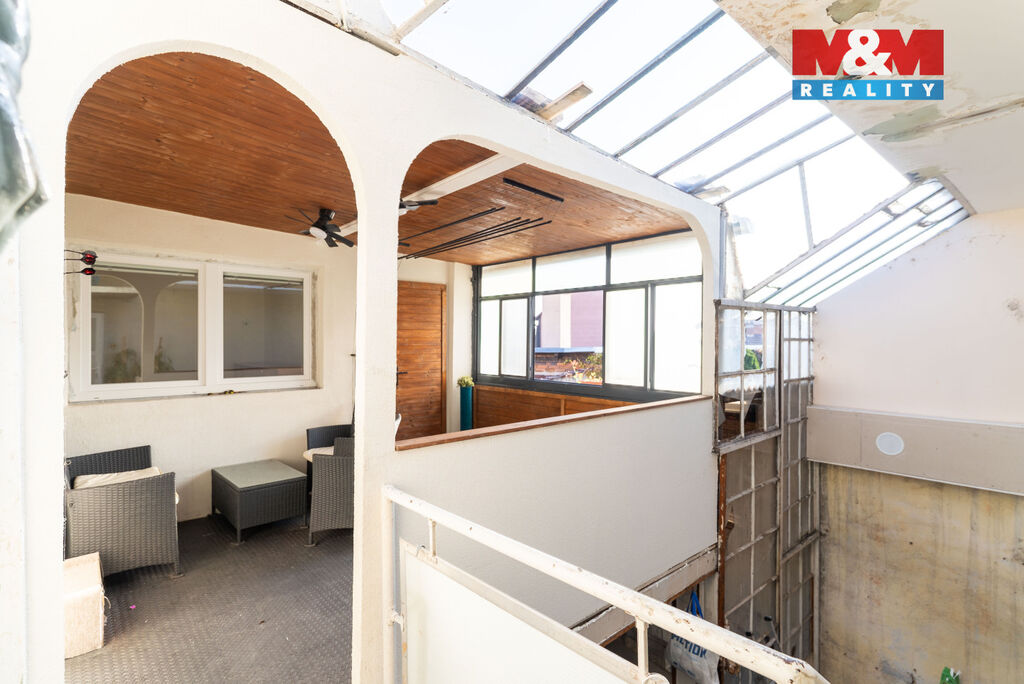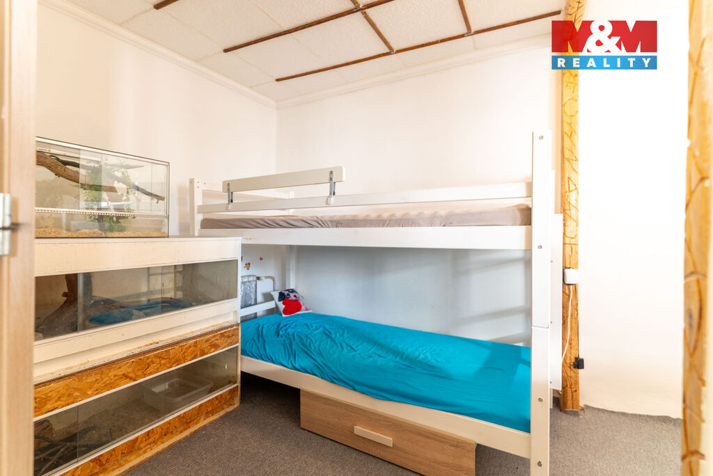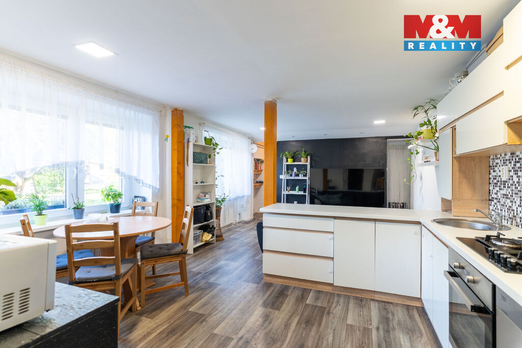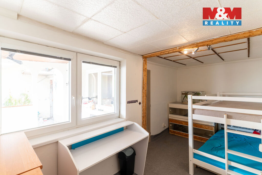 V přízemí se nachází obývací pokoj spojený s kuchyní, toaleta a vstup do dalších částí domu – dílny, chléva a na dvůr. V patře naleznete čtyři neprůchozí pokoje, koupelnu, samostatné WC, prádelnu a terasu.
