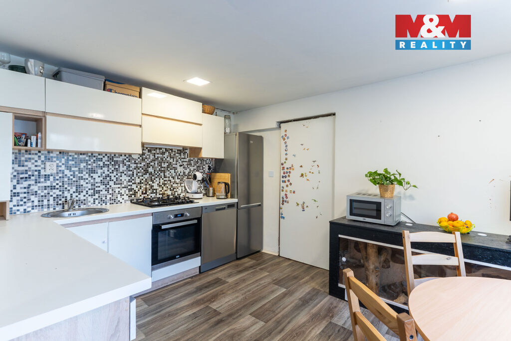 Jedná se o řadový dům se dvěma podlažími a dispozicí 5+kk, který nabízí dostatek prostoru pro pohodlné rodinné bydlení.