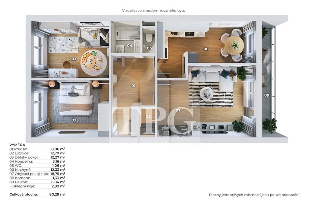 Nabízím k prodeji byt o dispozici 3+1, s lodžií , komorou , sklepem a celkovou plochou 80m2. Nemovitost se nachází v 1.patře (2NP) panelového domu s výtahem , obklopeného zelení.