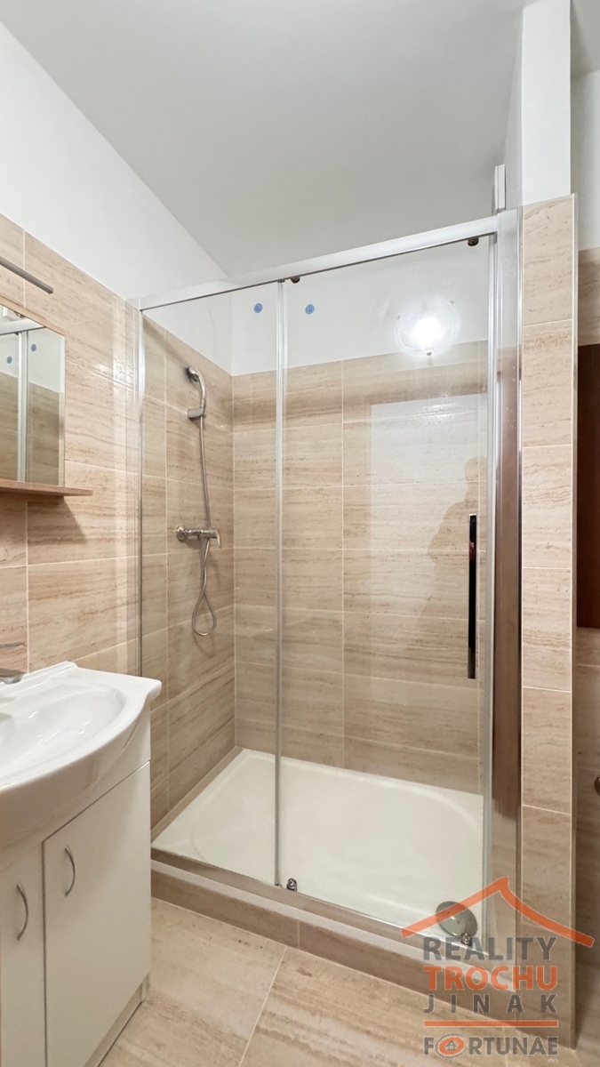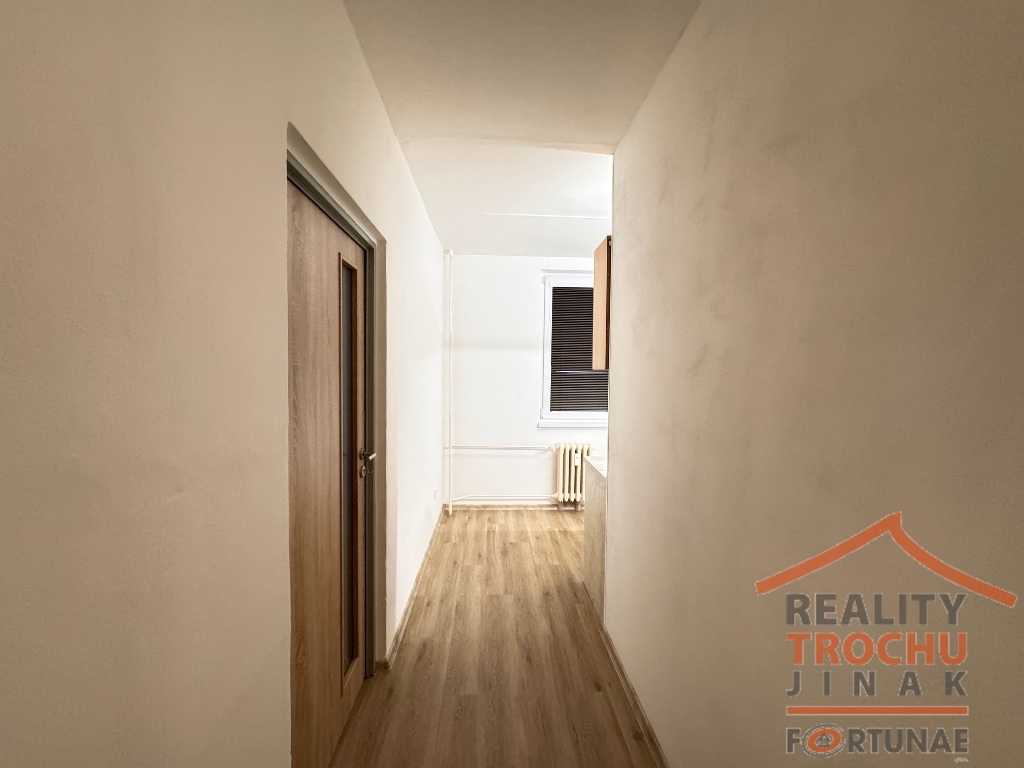 Dispozice: vstupní chodba, 1 obytná místnosti, kuchyň, koupelna (sprchový kout), WC, sklepní kóje. V bytě je nové zděné bytové jádro, koupelna, krytiny podlah.