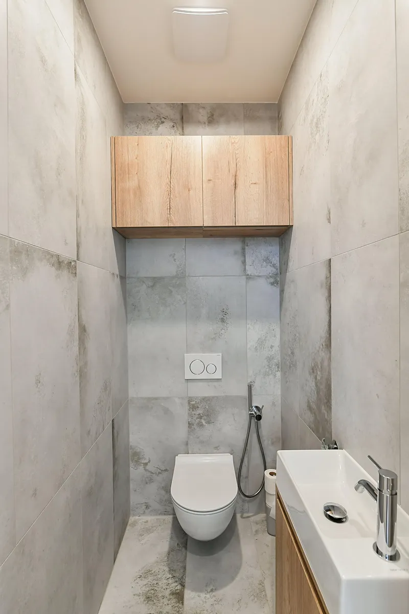Interiér bytu je zařízený a dispozičně byt nabízí vstupní chodbu s vestavěnou šatní skříní (se zabudovanou pračkou/sušičkou 2v1), a se samostatným vstupem do místností: světlého obývacího pokoje spojeného s kuchyní vybavenou moderní kuchyňskou linkou včetně spotřebičů (lednice s mrazákem, varná deska, trouba, myčka, digestoř), ložnici s vestavěnou šatní skříní. Obě místnosti jsou vybavené klimatizací. Dále byt disponuje stylovou koupelnou s komfortně prostorným sprchovým koutem, a samostatnou toaletou. Součástí vybavení bytu tvoří: pračka/sušička 2v1, dřevěné dubové podlahy, nová okna s dvouvrstvým sklem. K bytu náleží sklep o velikosti 1,9m2, ke kterému se pohodlně dostanete výtahem.
