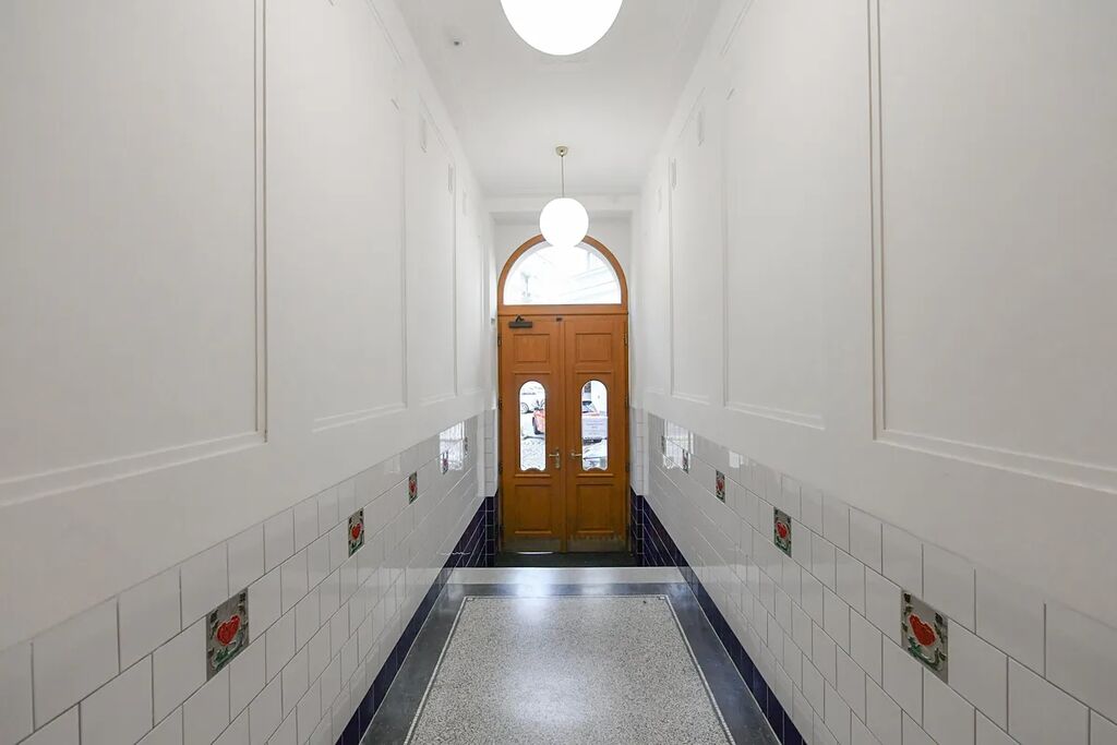 Nově zrekonstruovaný stylový byt 2+kk ( 1 ložnice, 1 koupelna), s klimatizací, o celkové podlahové ploše 43,9m2, je situovaný v 1.patře (2.NP) reprezentativní budovy s výtahem a se společnou zahradou v domě k užívání, se nachází v oblíbené lokalitě na Praze 10 Vršovice s veškerou občanskou vybaveností.