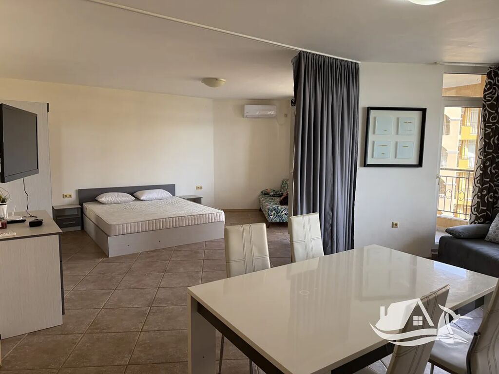 Představte si ráno, kdy otevřete okno a do vašeho bytu vstoupí vůně moře a slaný vánek. Hladina se třpytí v prvních paprscích slunce a vy víte, že den začíná tam, kde jiní tráví dovolenou. Takový pocit nabízí tento útulný apartmán o dispozici 1+kk ve čtvrtém patře elegantního komplexu Midia Grand Resort v Aheloy – místě, které spojuje klid, prostor a nekonečný horizont Černého moře.