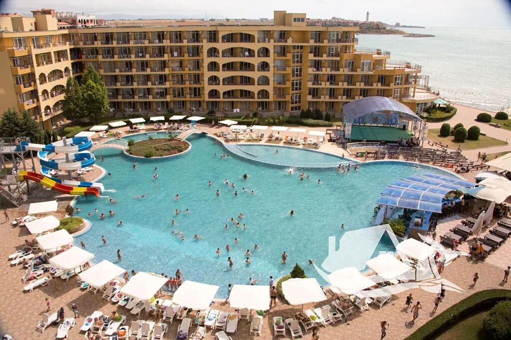 Midia Grand Resort leží jen 100 metrů od nejdelší pláže mezi Varnou a Burgasem. Místní promenáda vybízí k večerním procházkám, okolní vinice dodávají krajině klidný rytmus a městečko Aheloy vás pohltí svou přirozeností a harmonií. Do historického Nesebaru nebo rušného Slunečného pobřeží dojedete během několika minut, letiště Burgas je vzdálené přibližně půl hodiny cesty.
