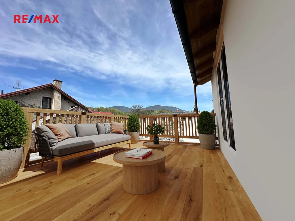 Dispozice tohoto velmi vzdušného a světlého apartmánu 3kk nacházejícího se ve 2NP a jeho podlahová plocha a dobré členění, nabídne až 8 lůžek. Apartmán disponuje malým pokojem se zvýšenou podestou na spaní, velkou ložnicí. Obývací pokoj spojený s jídelním a kuchyňským koutem díky otevřenému prostoru do podkroví působí velice vzdušně a umožnil zbudování mezonetu s plnohodnotným spaním pro další 2-3 osoby. Prostorná chodba pro vestavěné skříně a velká koupelna jsou samozřejmostí. Značným benefitem je prostorná terasa přístupná z obývacího pokoje s krásným výhledem na Černou Horu a západ slunce. V domě je pouze 7 apartmánů, každý má k dispozici vlastní park. místo s možností dobíjení elektromobilu a sklad.prostory.