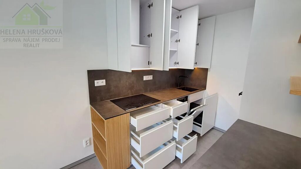 Moderní kuchyňská linka vybavena multifunkční troubou, mikrovlnou troubou, digestoří, myčkou, lednicí s mrazákem. Plovoucí podlahy, dlažba, obklady. Kvalitní osvětlení clého bytu.