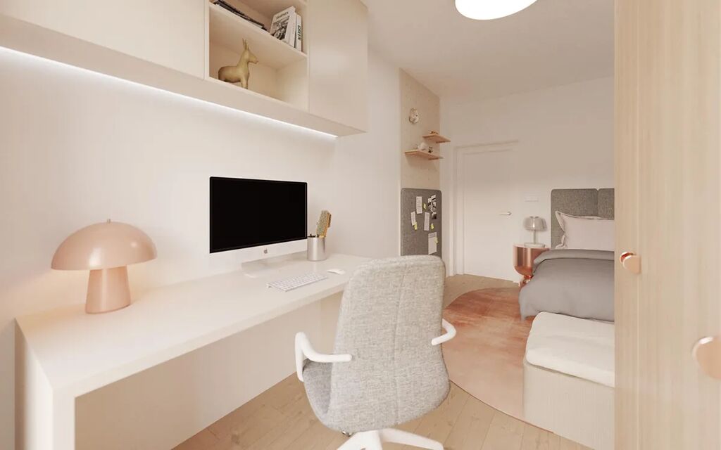 Dispozice bytu je promyšlená do posledního detailu. Tři ložnice poskytují klidné prostředí pro odpočinek i práci. Prostorný obývací pokoj s kuchyňským koutem tvoří srdce domova a nabízí ideální prostor pro společné chvíle. Koupelna je vybavena vanou i sprchovým koutem a nechybí ani praktické úložné prostory. Střešní terasa je perfektním místem pro relaxaci, posezení s přáteli nebo večerní výhledy do okolní krajiny.
