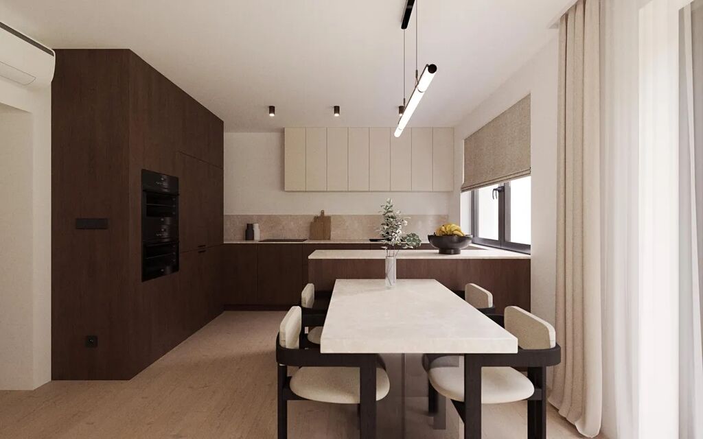 Vysoký standard vybavení zahrnuje dřevěné podlahy, přípravu na chytrou domácnost a další prémiové prvky, které zajišťují pohodlné a bezstarostné bydlení.
