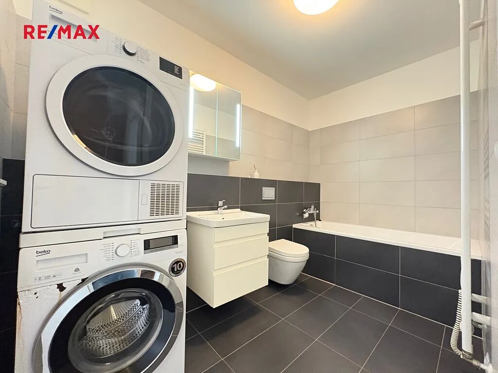 Dvě koupelny – hlavní s vanou, pračkou a sušičkou, druhá s toaletou a umyvadlem