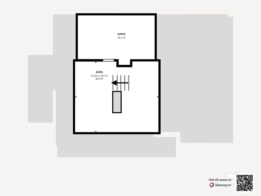 • rozlehlý půdní prostor, ideální jako ateliér, pracovna nebo herna.