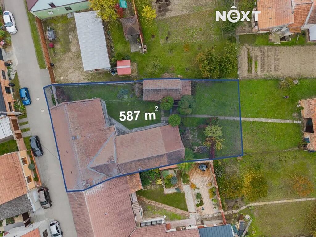 Celková plocha pozemku je 587 m2. Za pozemkem se nachází hospodářské stavení určené ke zbourání. Do dvora lze vjet autem přes průjezd.