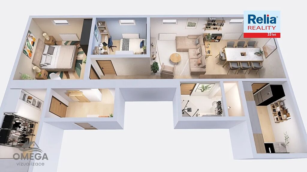 K inzerátu připojujeme vizualizace, které ukazují, jak by prostor mohl vypadat v případě jiné kolaudace. Tyto vizualizace slouží výhradně pro inspiraci a demonstraci prostorového potenciálu a nejsou v souladu se stávajícím účelem užívání.