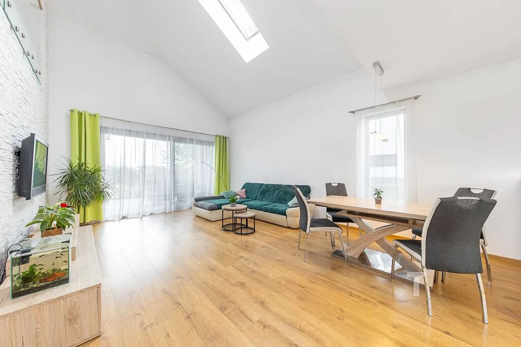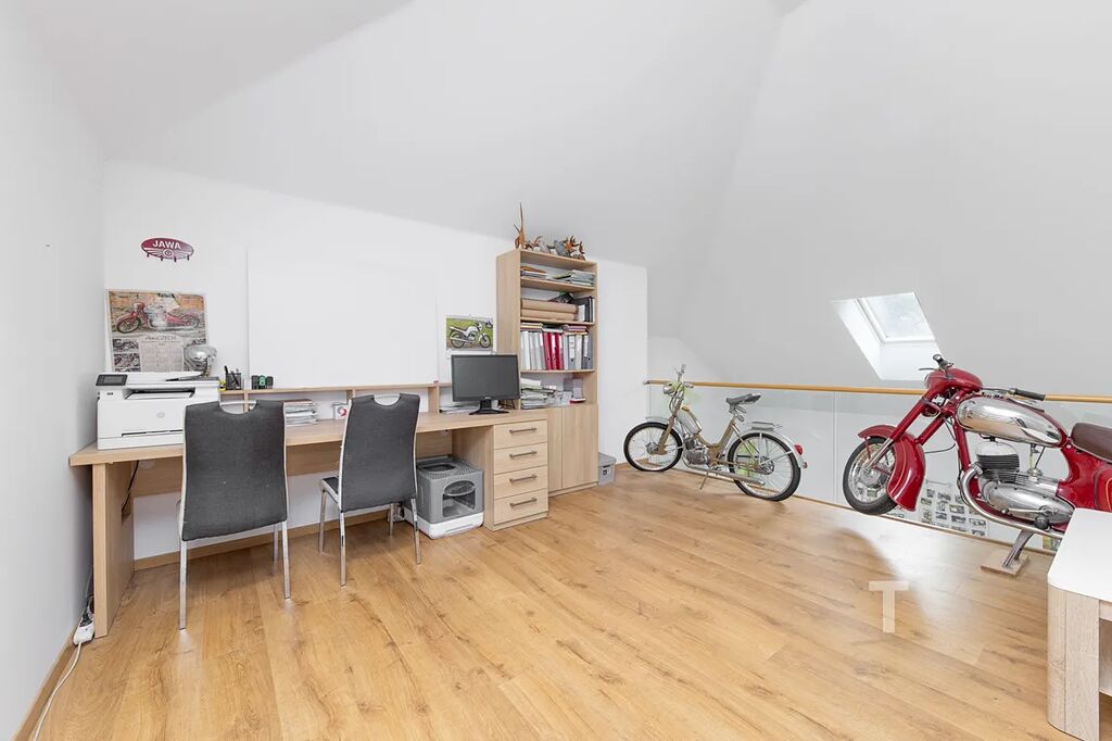 Dům je proveden s otevřenou galerií v podkroví, která je spojena s hlavním prostorem obývacího pokoje s kuchyní (42 m2), kde je možnost vzhledem prostoru v krovu k dalšímu rozšíření o další místnosti cca (120 m2).