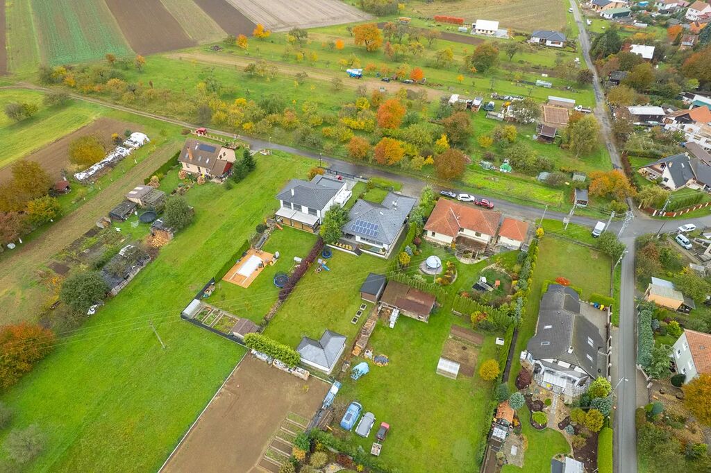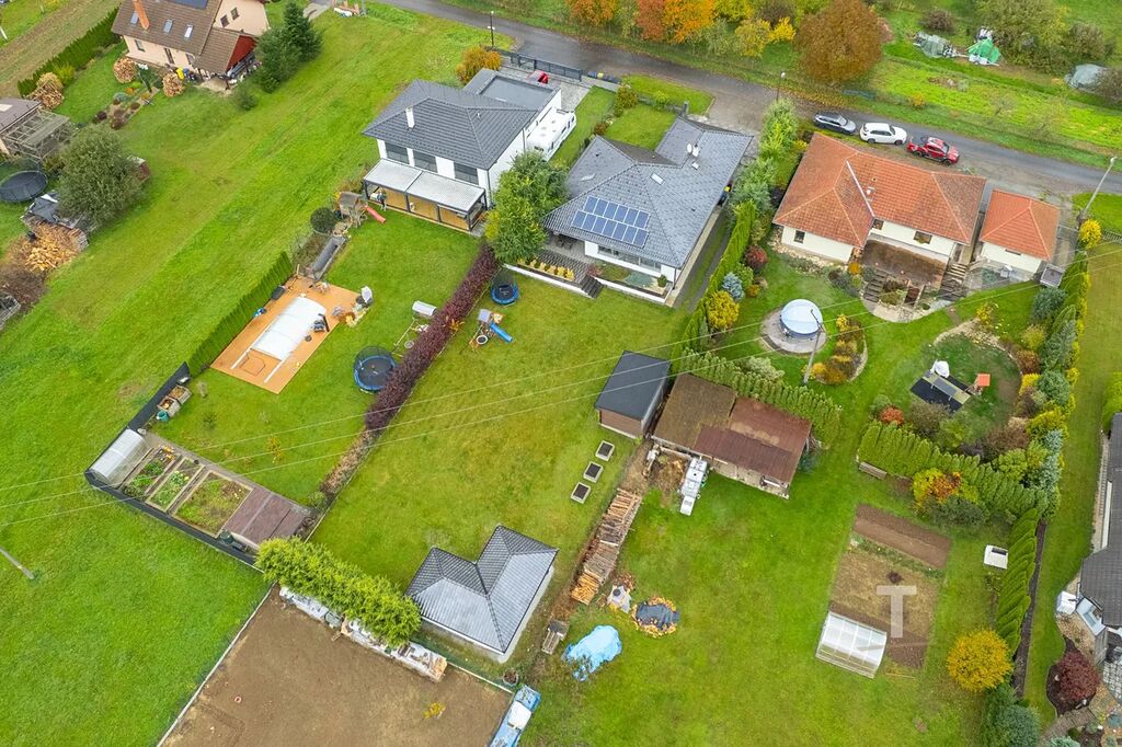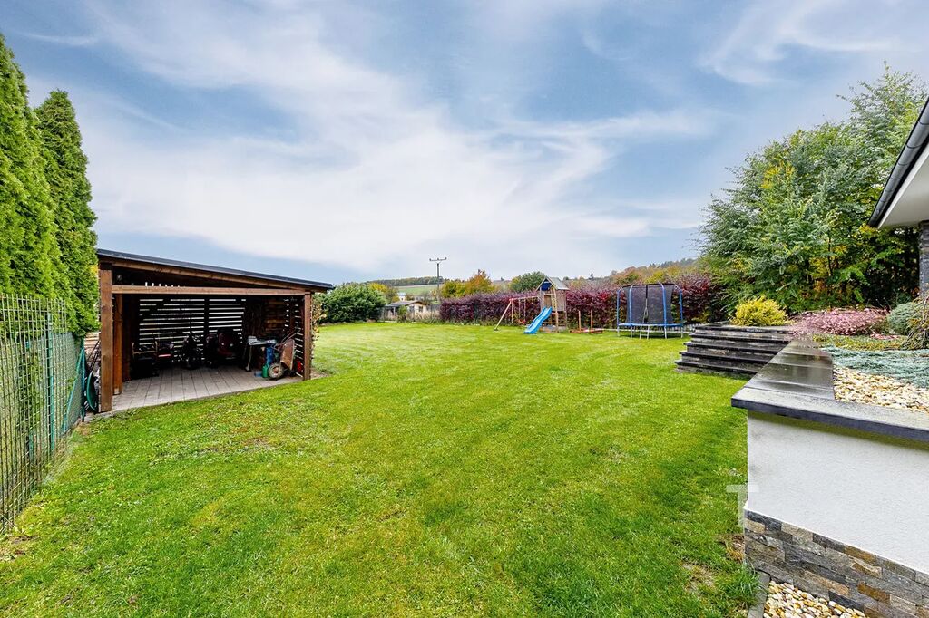 Velkou výhodou je možný přístup na zahradu podél domu (i pro velké nákladní auto), možnost parkování dalších 3 aut před domem na zpevněné ploše. Na zahradě se navíc nachází přístřešek pro další auto či cokoliv jiného. V zadní části zahrady stojí zděný zahradní domek o rozloze 28 m², do kterého je přivedena voda, odpad a elektřina. Uvnitř domku se nachází další garáž a příprava na kuchyni, což znamená, že celý tento prostor může sloužit jako „párty domeček“, malé wellness, posilovna nebo třeba jako dílna pro podnikání.